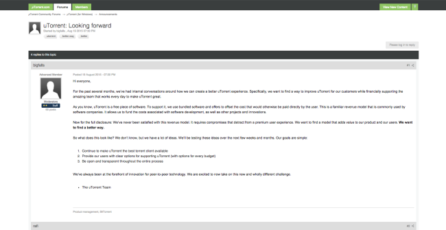 De esta manera y según el portal TorrentFreak, el equipo de esta red P2P no está contento con su sistema de ingresos, un modelo que, hasta ahora, ha basado su monetización en la publicidad y el software propio. Sin embargo, este segundo se asocia con fallos de seguridad, programas de riesgo, y otros problemas. Respecto a la segunda -los anuncios-, se viven como una auténtica molestia y entorpecen la experiencia del usuario.